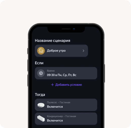 *Для работы сценариев все устройства должны быть совместимы с Алисой.