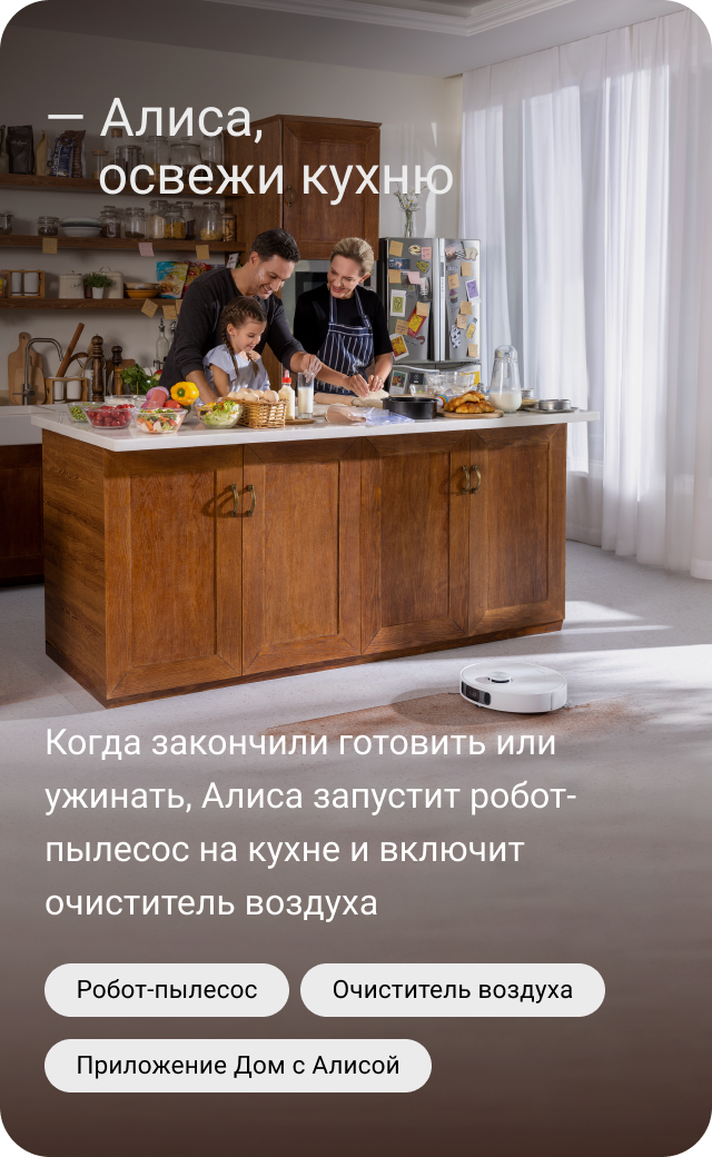 Виртуальный голосовой ассистент Алиса живёт в различных устройствах и помогает легко управлять множеством процессов и сценариев умного дома. Например — роботом-пылесосом.